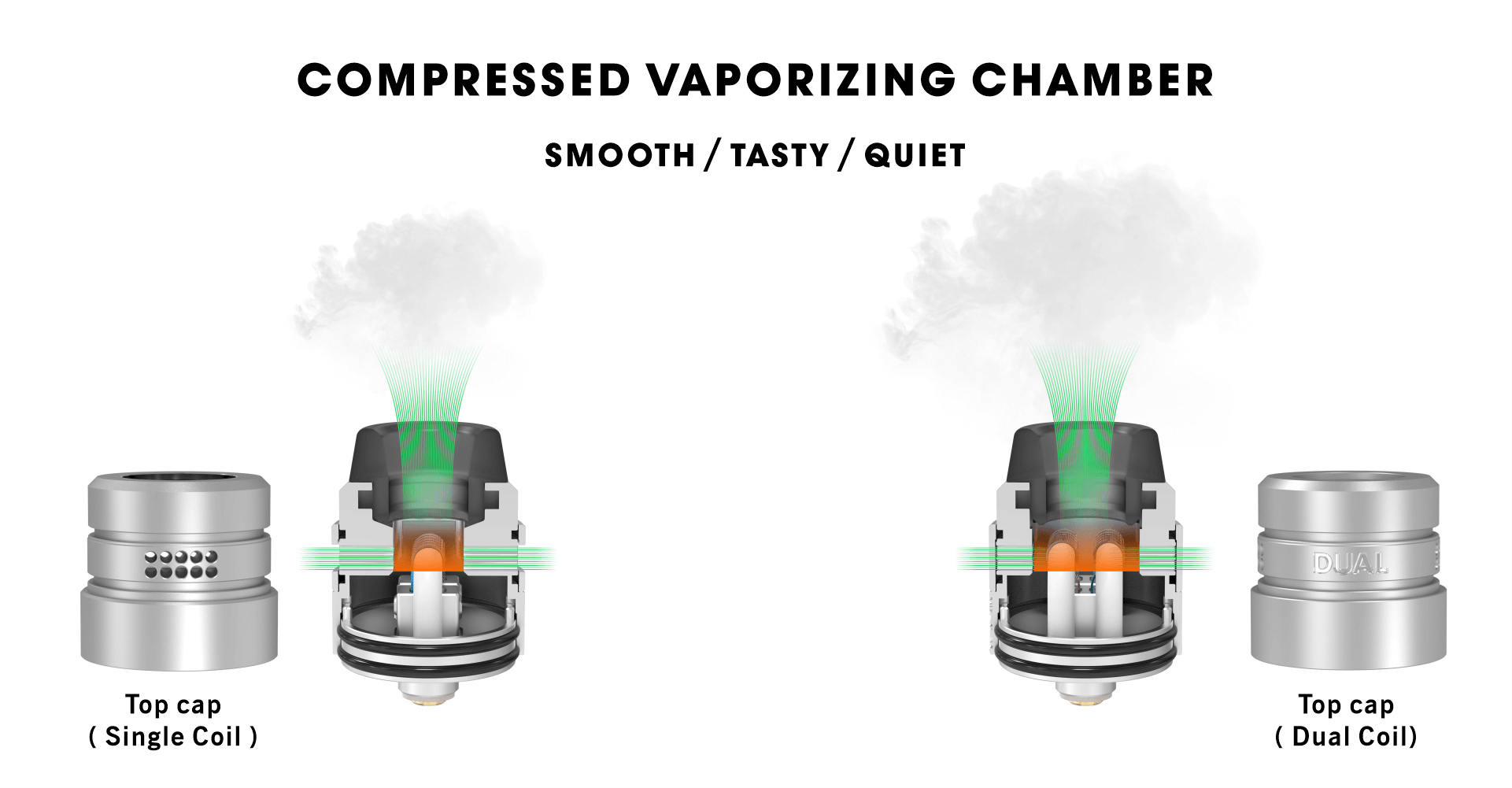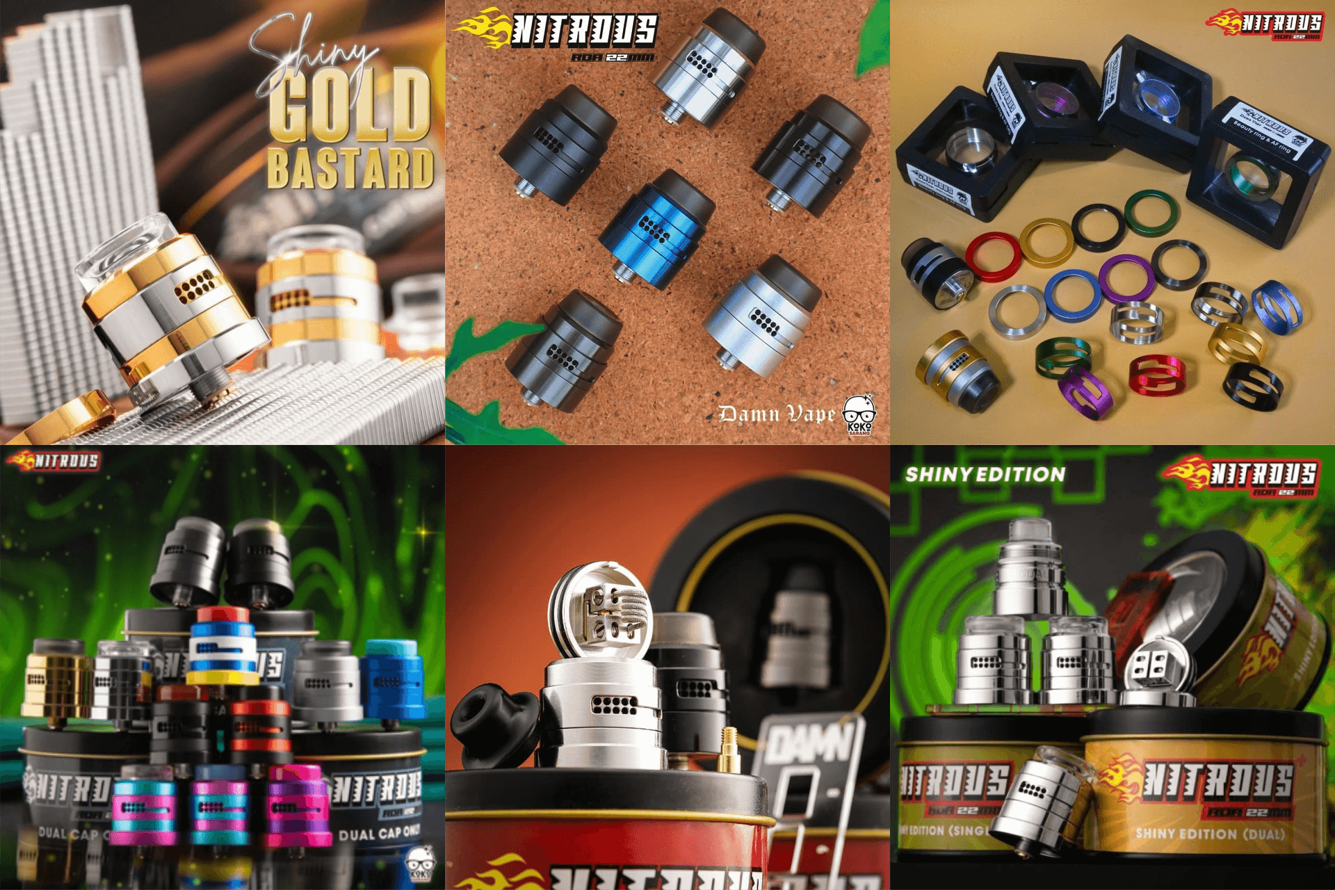 The Nitrous RDA represents Damn Vape's solution to the persistent challenge of balancing single and dual coil performance in compact 22mm form, incorporating an ultra-compressed chamber with an interchangeable top cap system that enables seamless transitions between concentrated single coil flavour and high-output dual coil vapour production.