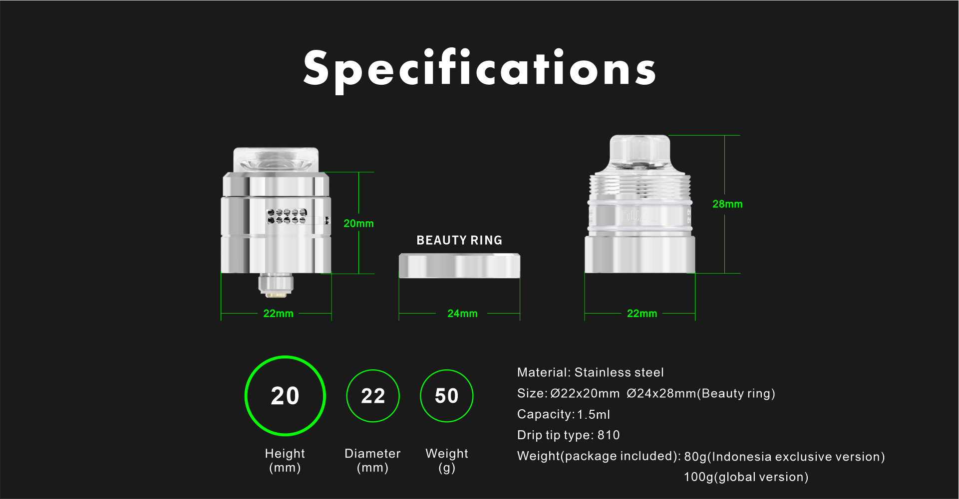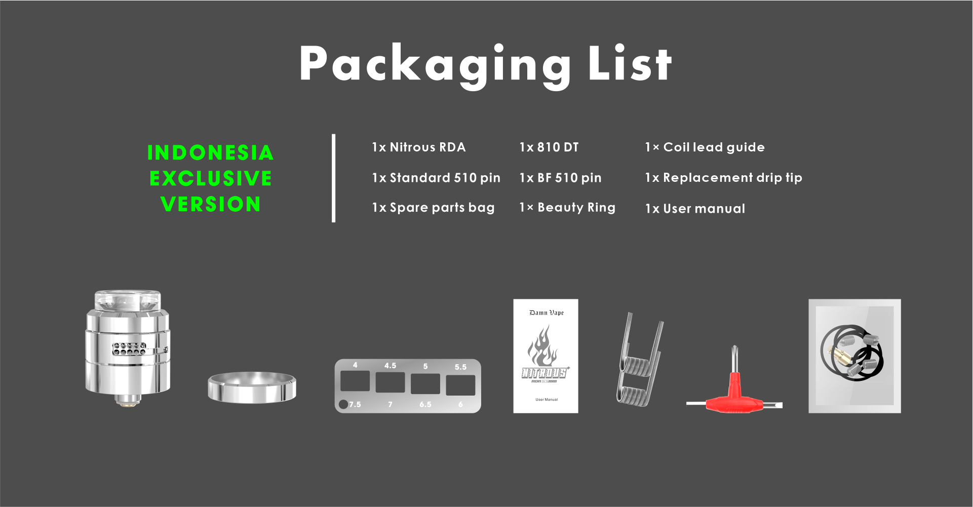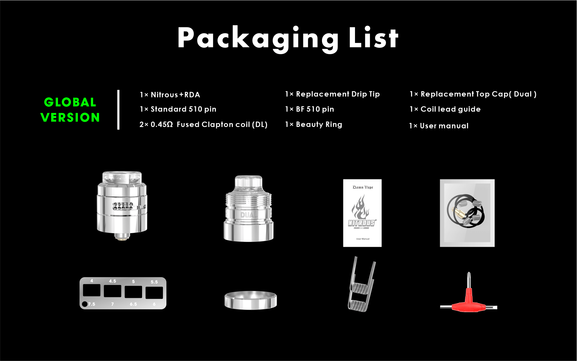 What sets the Nitrous apart from typical 22mm rebuildable dripping atomisers is its adaptability - most compact RDAs force you to choose between single or dual coil builds, but the Nitrous comes with dedicated top caps for each configuration, an elevated postless deck, precision-engineered airflow system, and deep 1.5ml juice wells that provide extended vaping between drips while maintaining exceptional build quality and performance throughout.